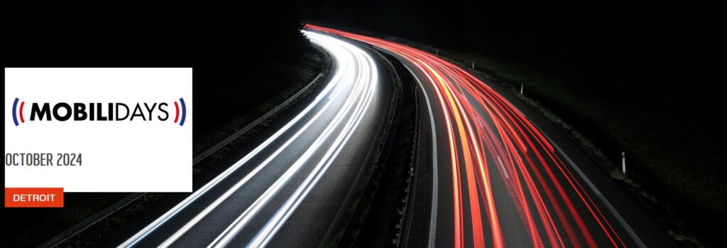 Le programme des Mobilidays 2024 se déroulera du 7 au 10 octobre à Détroit, Michigan, avec des rencontres d’acteurs du marché de la mobilité en Amérique du Nord, comme GM, Stellantis, Nissan, Borgwarner, Magna, et différents rendez vous B2B dans le cadre du Battery Show, l’un des salons automobile majeur au niveau international.